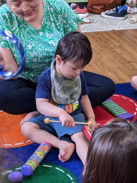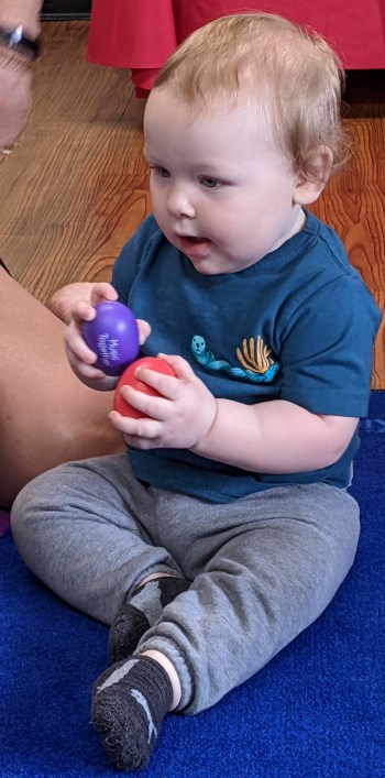 You know when your child babbles their first words or partial words, it's so much fun to hear their little voices. And with each new word, the fun just grows with their vocabulary. In class on Tuesday and Wednesday, we caught both Charlotte and Lochlan (both in their third Music Together semesters) singing the resting tone, and singing back the tonal patterns. I'm certain there were others that we missed so when you hear them babbling musically (at home or in class), be sure to share with us! It's exciting to be cultivating our children's musical development right along with their language and other life skills. And all while playing and having the best time ever with friends and favorite caregivers!