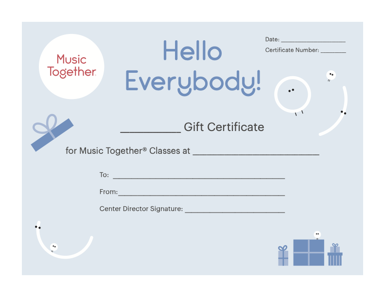 Surprise your family and friends with a tuition gift certificate for a semester of family music making together! Great for birthdays, holidays, and all occasions!